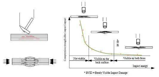 相比較于飛行過程中高能量的瞬間沖擊,日常使用、維修過程中的低能量沖擊更令工程師感到頭疼,事實上飛機復合材料部件最多的損傷恰恰就是在維護過程中各種碰撞、拆卸而產(chǎn)生的,比如維修人員身上掉落的扳手砸到結(jié)構(gòu)表面造成的沖擊損傷,這不經(jīng)意的一瞬間足以造成內(nèi)部的缺陷。而與高能量沖擊不同的是,這種缺陷在外表面可能根本無跡可尋。而當你發(fā)現(xiàn)表面有勉強目視損傷時,可能結(jié)構(gòu)內(nèi)部已經(jīng)受損嚴重,強度也驟降一半之多。